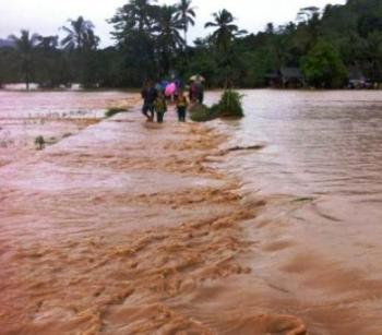"saat ini akses jalan umum yang biasa Kami lintasi sudah terendam total, terpaksa harus nunggu surut dulu agar bisa lewat," tandas Opang. (WOK/GEL)