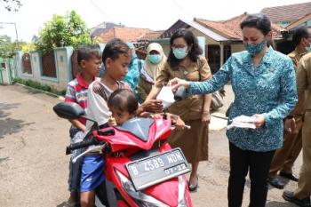 Kali ini gebrak masker dilakukan serentak di Tim Penggerak PKK setiap kecamatan, dan Yuli Zaki Iskandar membagikan masker di dua wilayah Kecamatan Cisauk dan Pagedangan kepada masyarakat yang masih belum menerapkan protokol kesehatan.