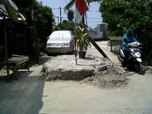 PASAR KEMIS - Penolakan warga Perumahan Vila Tangerang Elok terus meluas. Kesal dengan ulah pengembang, warga memasang portal di jalan akses menuju Proyek Pembangunan Perumahan Safani Residence dengan batu beton berukuran 2X2 meter. Warga kesal lantaran pengembang tidak memiliki izin lingkungan dari warga.