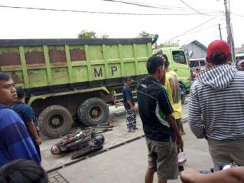 Truk Pengangkut Tanah Gilas 5 Sepeda Motor dan 1 Angkot