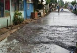 “Coba bayangkan mas, sudah tidak ada pengerasan dasar lebih dulu, tidak pakai penguat besi kerangka sepotongpun. Sedangkan di sekeliling sini banyak pabrik dan kendaraan yang lalu lalang melintasi jalan ini bebannya cukup berat hingga puluhan ton,” ujarnya.
