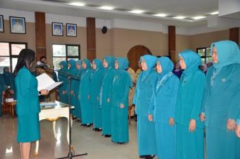 PENDOPO — Pengurus Tim Penggerak Pembinaan Kesejahteraan Keluarga (TP-PKK) di 13 kecamatan se Kabuapten Tangerang dilantik, Selasa (19/4/2016). Usai pelantikan, diharapkan para pengurus PKK ini langsung membuat menjalankan program kerja di masing-masing wilayah.