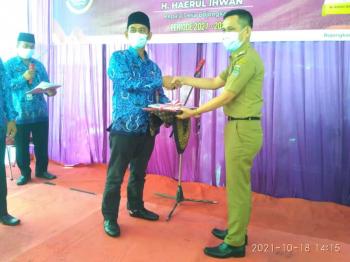 LEGOK, (JT) - Pemerintah Kecamatan Legok, Kabupaten Tangerang menggelar serah terima jabatan kepala desa Bojong Kamal, Senin (18/10/2021). Kades terpilih diharapkan dapat menjalankan estafet pemerintahan untuk membangun desa.