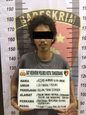Dua dari 3 tersangka sudah dibekuk yakni 2 pria berinisial MAA(22) dan AAW(22). Keduanya ditangkap di Perumahan Adiyasa, Desa Cikasungka, Kecamatan Solear, Kabupaten Tangerang. Sedangkan 1 tersangka lain yang sudah diketahui identitasnya sedang dalam pengejaran dan sudah ditetapkan sebagai daftar pencarian orang (DPO).