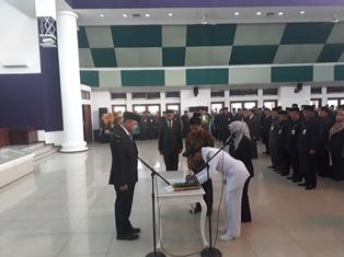 “Pengukuhan dan alih tugas jabatan tinggi pratama, administrator, dan pengawas ini merupakan penyelarasan dari SOTK (Struktur Organisasi dan Tata Kerja) dan PP (Peraturan Pemerintah) yang baru sesuai dengan Perda (Peraturan Daerah),” papar Zaki.
