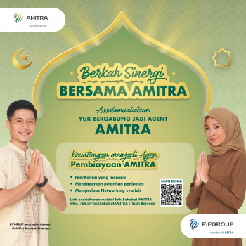 JAKARTA, (JT) - PT Sharia Multifinance Astra (PT SMA) dengan brand service-nya bernama AMITRA yang merupakan anak perusahaan PT Astra International Tbk dan bagian dari FIFGROUP dalam menyediakan pembiayaan syariah. Kali ini Amitra memberikan peluang penghasilan tambahan baru bagi masyarakat. Peluang ini dapat dimanfaatkan melalui Program Kerja Sama Rekanan yang dilakukan bersama dengan AMITRA.