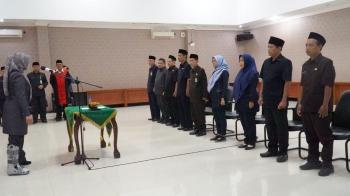 PANDENGLANG, (JT) - Bupati Pandeglang Irna Narulita melantik dan mengambil sumpah jabatan untuk Jabatan Pimpinan Tinggi (Jpt) pratama esselon IIb, Jabatan Fungsional (Jafung) pranata kehumasan serta Jafung pengelola pengadaan barang dan jasa di offroom Setda, Selasa (19/03/2024).