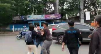 "Sempat terjadi tarik menarik spanduk antar aggotaka dan mahasiswa. Karena ada yang mengeluarkan kata-kata kotor, akhirnya amggota ka i terpancing emosi. Tapi tidak benar ada aksi pemukulan," kilahnya. (PUT)
