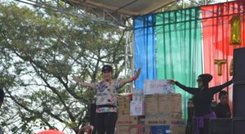 "Ayo masyarakat Panongan harus semangat. Kita senam bersama agar tubuh kita tetap sehat," ujar Yurike, dihadapan ratusan warga Panongan.