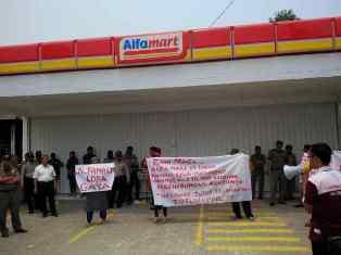 Pedagang Kecil dan Warga Geruduk Alfamart Saga