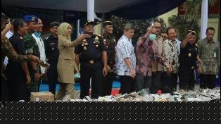 SERPONG UTARA - Kantor Pengawasan dan Pelayanan Bea dan Cukai Wilayah Banten memusnahkan ribuan miras dan jutaan batang rokok Barang Milik Negara (BMN). Barang ilegal yang dimusnahkan senilai Rp3,1 miliar.