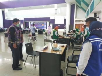 TIGARAKSA, (JT) - Sekretaris Daerah Kabupaten Tangerang Moch Maesal Rasyid tinjau pelaksanaan Vaksinasi tahap kedua periode pertama bagi Petugas Pelayanan Publik di Kabupaten Tangerang, Kamis (25/02/2021).