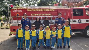 Guru TKIT Permata Auliya Desa Sodong, Kecamatan Tigaraksa Kabupaten Tangerang Cindy Melinda Deviana dan Siti Quratul Ainul Jannah mengatakan kunjungan ke Pos Damkar merupakan agenda rutin dari sekolah untuk mengedukasi kepada murid TKIT Permata Auliya terkait penanganan Kebakaran.