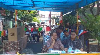 "Diberitahukan hari ini ada pemungutan suara ulang," ujar seseorang terdengar menyiarkan dalam pengeras suara di sekitar TPS 3 tersebut.