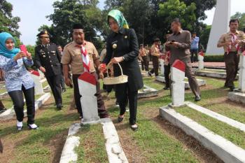 SETU-Dalam memperingati Hari Pahlawan ke-71 Walikota Airin Rachmi Diany melakukan tabur bungan di TMP Seribu, Setu, Kamis (10/11/2016).