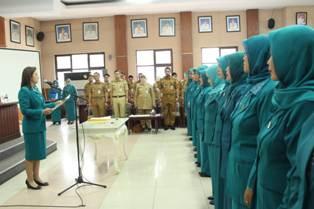 TANGERANG - Ketua TP PKK Kabupaten Tangerang Yuli Zaki Iskandar meminta para Camat agar mendukung penuh Ibu PKK beserta programnya. Itu yang dikatakan Yuli Zaki Iskandar saat memberikan sambutan pada Pelantikan PKK kecamatan di Pendopo Bupati Tangerang, Selasa, (13/8/2019).