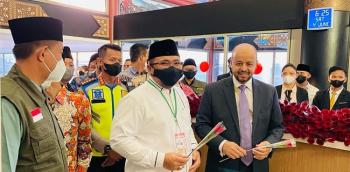 BANDARA, (JT) - Menteri Agama Yaqut Cholil Qoumas, melepas kelompok terbang (kloter) pertama, calon haji tahun 2022 asal Embarkasi DKI Jakarta, di terminal 2 F, Bandara Soekarno-Hatta, Sabtu (4/6/2022).