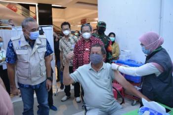 KOSAMBI, (JT) - Bupati Tangerang Ahmed Zaki Iskandar memantau dan monitoring penyuntikan vaksinasi di Mall Grand Dadap Kosambi dan ICE BSD Pagedangan Kabupaten Tangerang, Sabtu (10/4/2021).