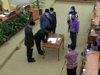 TIGARAKSA, (JT) - Dewan perwakilan Rakyat Daerah (DPRD) Kabupaten Tangerang menggelar rapat Paripurna, Kamis (10/9/2020). Ketua DPRD dan Bupati menandatangani kesepakatan persetujuan kebijakan umum (KUA) prioritas dan plafon anggaran sementara (PPAS) APBD Perubahan 2020.