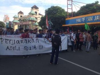 Ratusan mahasiswa ini berorasi ditengah jalan dengan membawa sejumlah spanduk berisikan kecaman hingga pemecatan Saut Situmorang. Beruntung, aksi ini berjalan damai dengan kawalan petugas kepolisian.