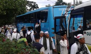 Para jemaah berkumpul di Masjid Al Ikhlas, Taman Asri Blok J, Ciledug. "Ada yang berangkat naik bus dan 15 kendaraan pribadi," ucapnya.