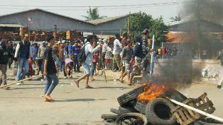 Ratusan warga menyerang petugas kepolisian dengan botol dan bambu dibalas dengan tembakan gas air mata. Dua orang petugas kepolisian mengalami luka dan terpaksa dilarikan ke klinik terdekat, sementara dua orang warga yang diduga menjadi provokator diamankan.