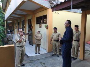 PASAR KEMIS - Bupati Tangerang Ahmed Zaki Iskandar meninjau pelaksanaan Ujian Nasional (UN) tingkat Sekolah Menengah Pertama (SMP) pada hari ke dua, Selasa (10/5). Saat ini menurut Zaki UN SMP belum bisa berbasis komputer hingga 4-5 tahun mendatang.