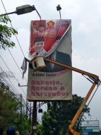 Panwaslu Kota Tangerang Bersihkan APK Cagub Cawagub