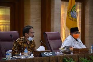 TANGERANG, (JT) - Menteri Agraria dan Tata Ruang/Kepala BPN RI Dr. Sofyan Djalil memimpin rapat soal rencana teknis penataan kota di Banten bersama lima Kepala Daerah Bupati/Walikota. Rapat tertutup berlangsung di Ruang Akhlakulkarimah Puspemkot Tangerang, Kamis (16/7/20).