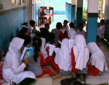 "Siswa kelas V juga sama proses KBMnya dilakukan disebuah lorong bangunan sekolah depan ruangan Kepala Sekolah, jadi setiap hari belajar disini, dilorong depan ruangan kepala sekolah, tergeletak dilantai tanpa meja dan kursi, kami juga ingin belajar di ruangan yang dilengkapi meja sama kursi, agar kami dapat belajar dengan maksimal, tanpa harus terus-terusan belajar dilantai seperti ini," katanya.