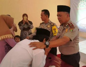 Dalam pertemuan itu, kedua mempelai terlihat canggung. Mereka tampak tersipu malu kala melihat anggota polisi menyaksikan proses pernikahan keduanya.