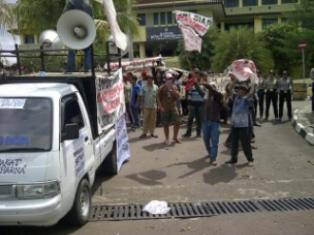 Puluhan orang ini sempat menggelar aksi di depan gedung kantor Bupati Tangerang, di Jalan Somawinata No 1 Puspemkab Tangerang. Setelah itu mereka akhirnya diterima oleh Kepala Satpol PP yang mewakili Bupati Tangerang.