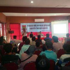 CIKUPA - Dinas Perhubungan Kabupaten Tangerang menggelar Sosialisasi tentang keselamatan berlalulintas bagi ojek, Selasa (22/12/2015). Acara yang digelar di Saung Sunda Telaga Bestari, Cikupa ini menghadirkan narsumber Kabid Lalin Kota Tangsel Wijaya Kusuma dan Wakasatlantas AKP Herman.