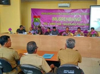 JAMBE - Usulan Pembangunan infratruktur jalan dan jembatan Desa Sukamanah, Kecamatan Jambe, Kabupaten Tangerang, mencuat saat musyawarah rencana pembangunan (Musrenbang) di Kecamatan Jambe Selasa (7/3/2017).
